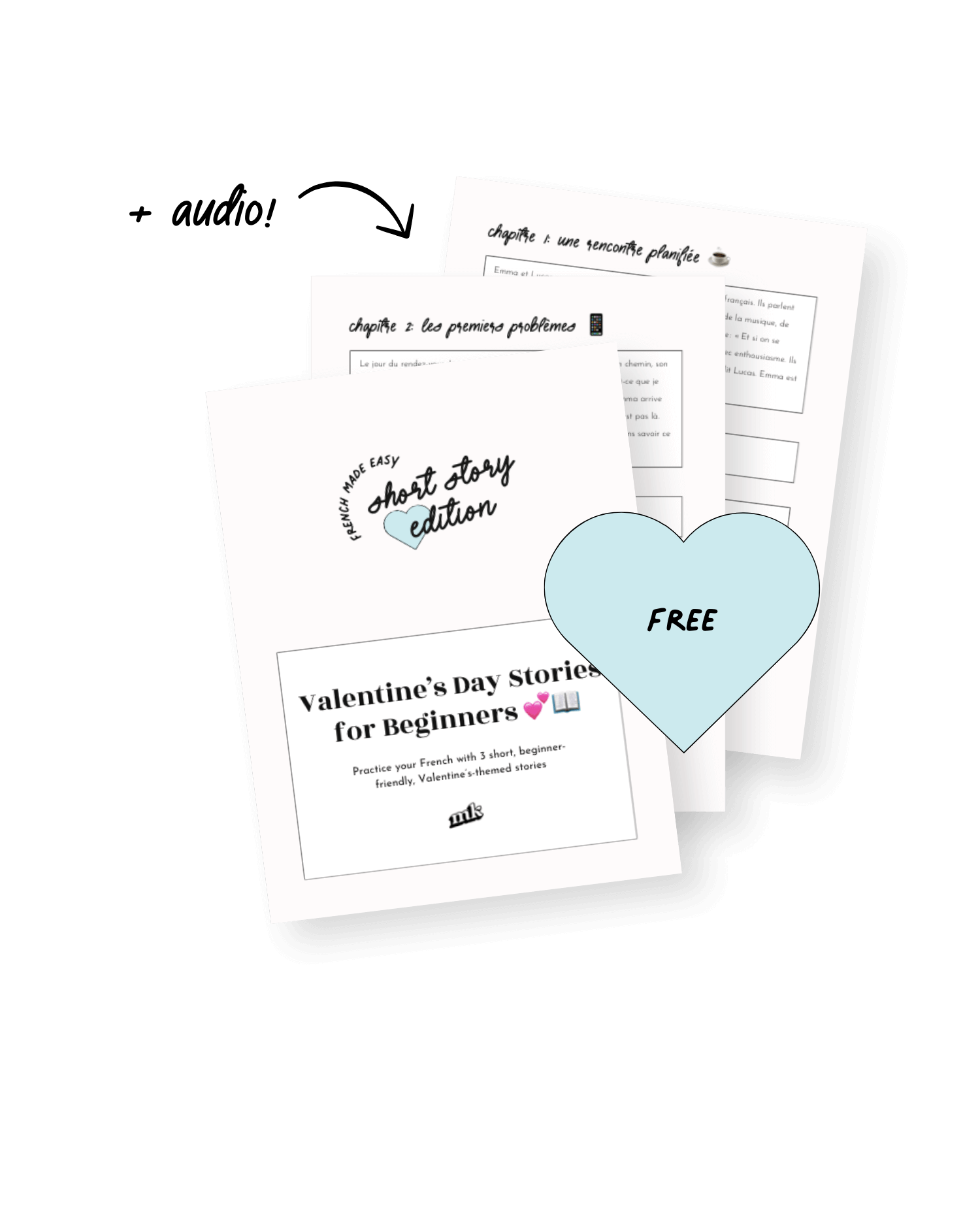 Practice your French with 3 short, beginner-friendly Valentine’s stories—complete with comprehension questions, answers, English translations, and audio recordings to follow along!