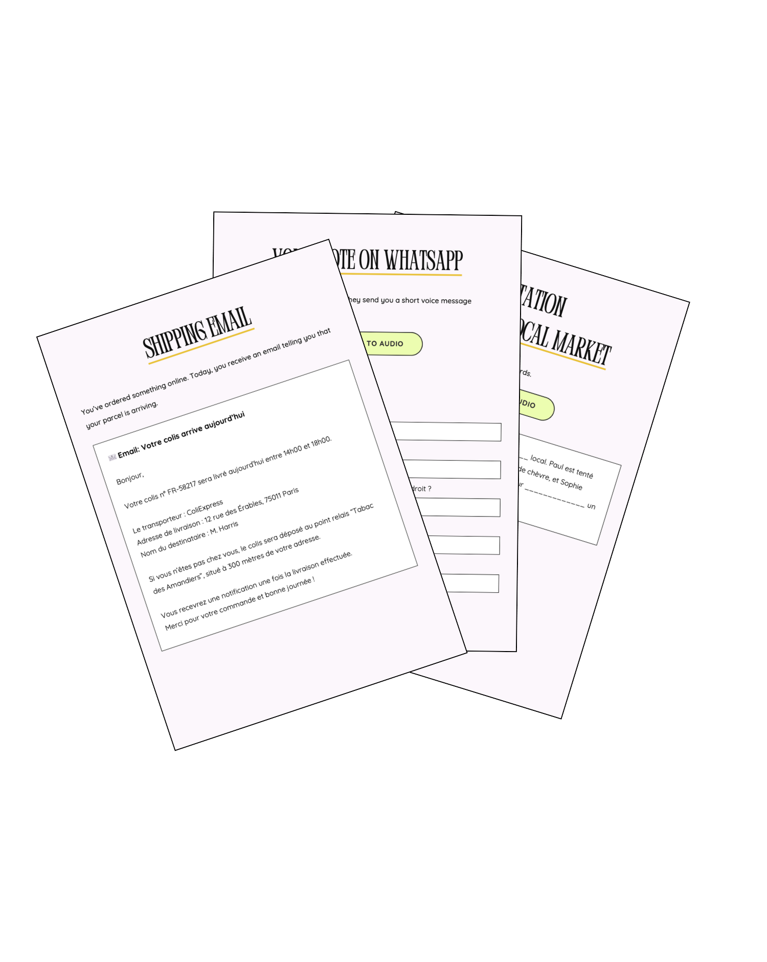 Iβm so happy youβve joined the 3-Day French Comprehension Challenge! All three days are now unlocked for you, so you can go through the activities at your own pace.