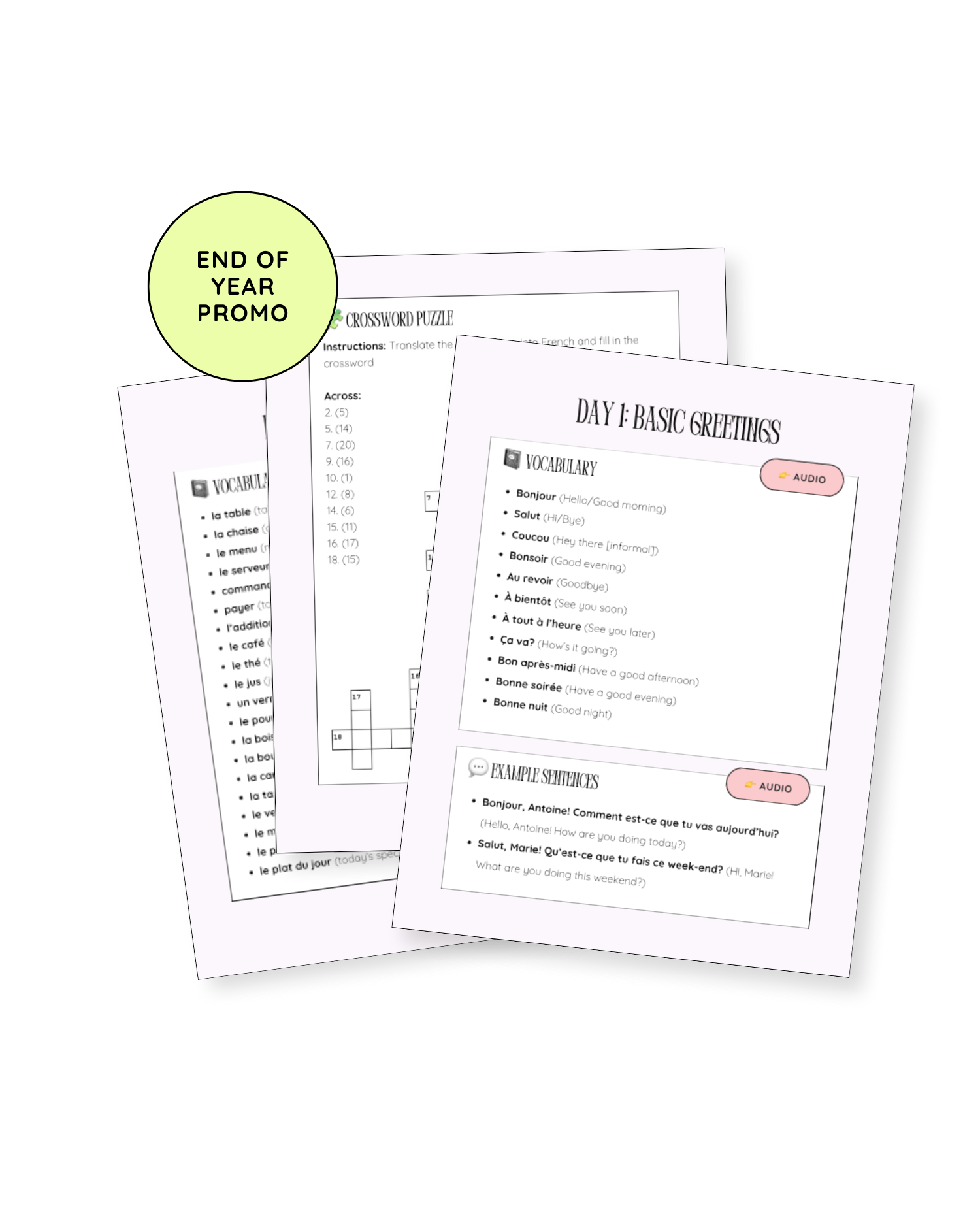 A 31-day beginner-friendly program to help you finally build the French vocabulary you need — just in time for the New Year. 🥂