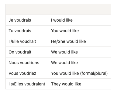 HOW TO SAY "I WOULD LIKE" IN FRENCH